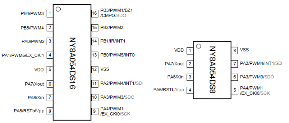 NY8A054D腳位和功能說明   / FUNCTION DESCRIPTION